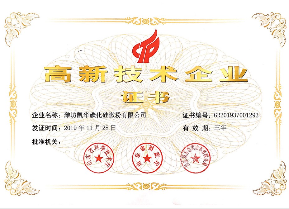 濰坊凱華碳化硅微粉有限公司成立于2002年,國家高新技術企業,公司占地40畝,標準廠房19000平方,辦公樓、研發(fā)處2000平方,年生產能力3萬噸。一直從事陶瓷級微粉的生產銷售,所生產的超細碳化硅微粉具有純度高、粒形好、穩(wěn)定性強等特點,主要用于反應燒結、無壓燒結、硅碳棒新工藝、重結晶燒結、蜂窩陶瓷、機車制動裝置、研磨拋光、金屬防腐表面噴涂、納米隔熱保溫材料等領域。標準產品有:F240、F1200、W40、W28、W20、W14、W10、W7、W5、W3.5、 W2.5、W2、W1.5、W0.5、5S、D3E、100F、RS07、RS100及整形高密度系列綠碳化硅微粉......